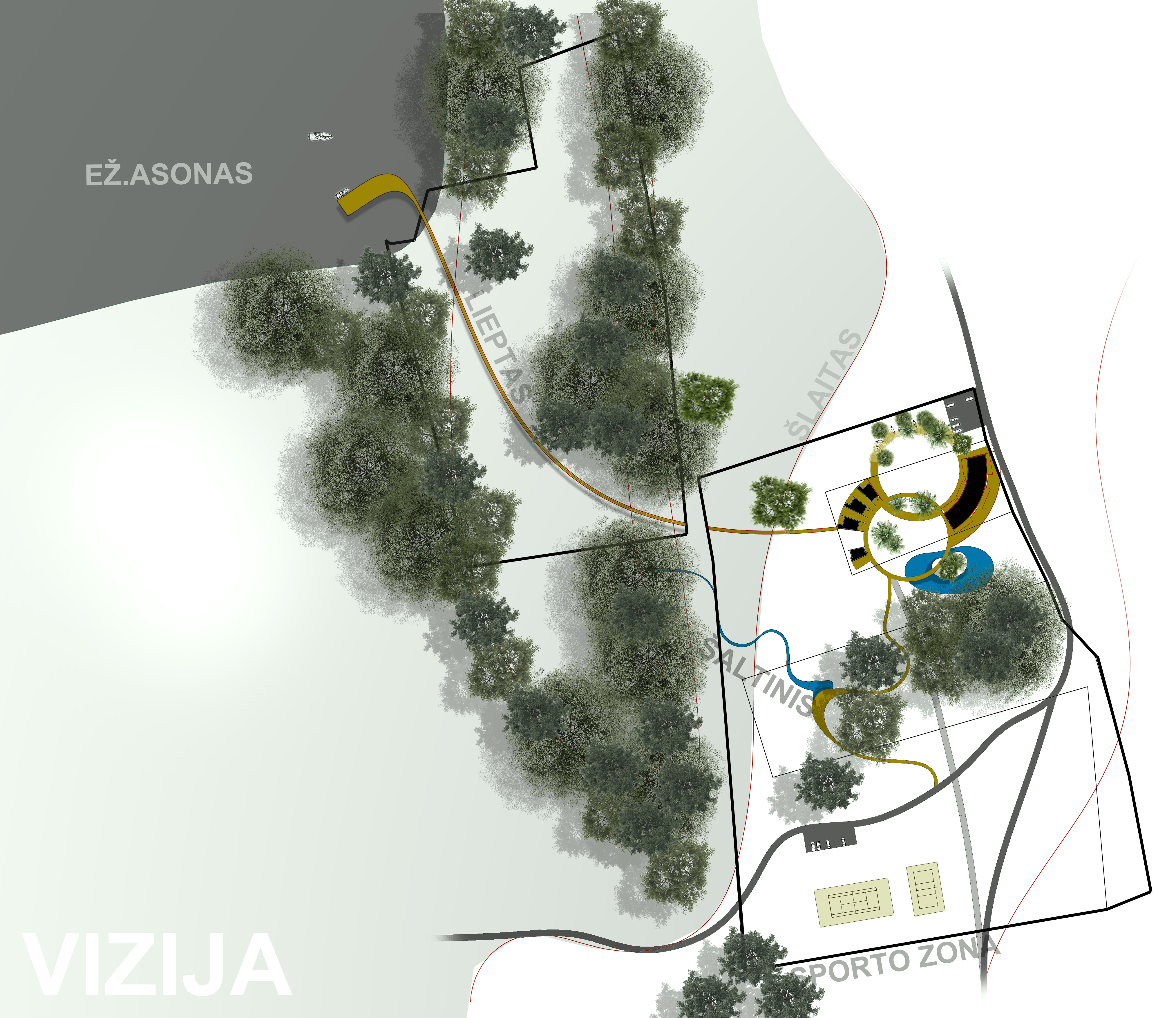Patraukli teritorija Asono ežero pakrantėje, laukinės gamtos apsupty architektų vizijose nusikėlė į ateitį. Poilsio kompleksas su sporto aikštynais, šaltiniu, takais ir lieptais – urbanistinis pasvajojimas apie vietos potencialą vystytis.